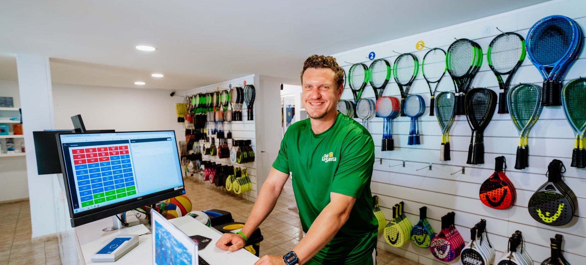 Sports Booking er Club La Santas nervecenter og centralt placeret midt på resortet. Det er her, du kan tilmelde dig de forskellige aktiviteter, reservere baner, hente sportsudstyr som ketchere, yoga måtter og svømmeudstyr, købe bolde og meget andet.