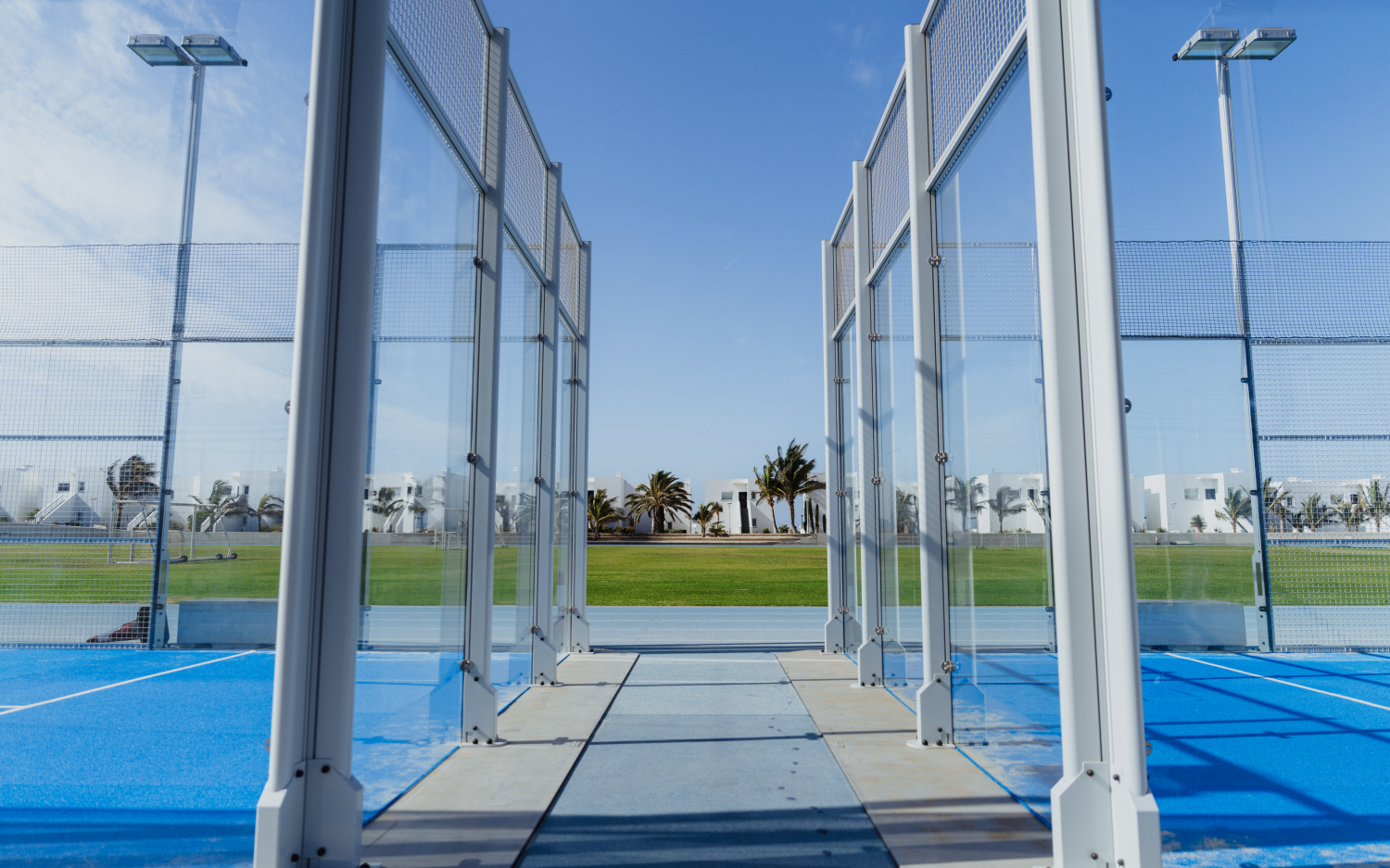Juega partidas individuales y mejora tu estilo y habilidades de pádel en una de las cuatro nuevas pistas de pádel 1x1. Estas nuevas pistas AFP tienen la mitad de tamaño que una pista de pádel tradicional (510 m²). Están fabricadas con aluminio Hydro Restore para aumentar su durabilidad frente a las condiciones climáticas de Lanzarote y con un 80% de materiales reciclados para mejorar la sostenibilidad.