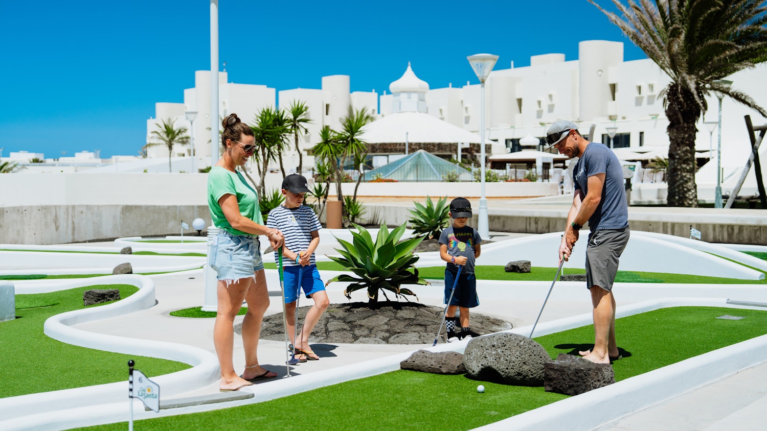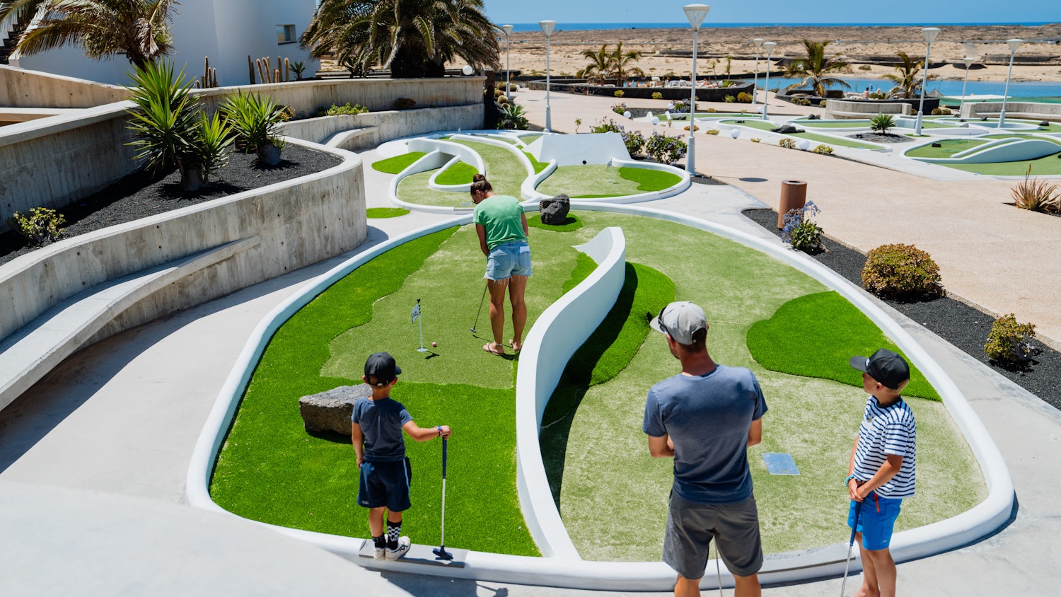 Juega al minigolf cuando te apetezca en nuestro campo de 15 hoyos. Ubicado en el corazón del resort, es el lugar perfecto para disfrutar del atardecer. El campo está hecho con césped artificial y cuenta con iluminación para que puedas jugar incluso cuando se pone el sol. Puedes coger los palos y las pelotas del armario que se encuentra en la zona de minigolf.