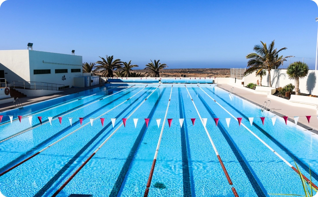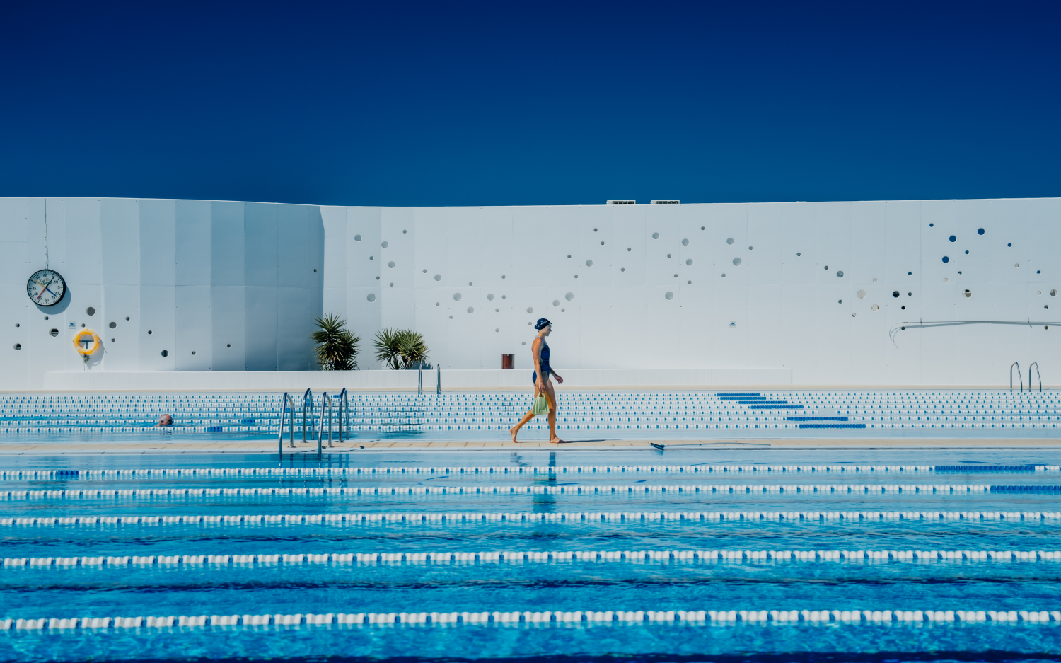 La piscina sur ofrece condiciones perfectas para entrenar, tanto si nadas solo como con un equipo.