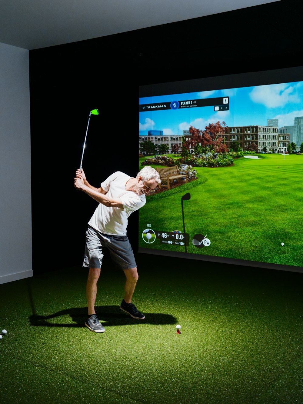 Practice your shots, participate in games and tournaments or play on famous international golf courses with our two, cutting-edge TrackMan Indoor Golf Simulators in the new TrackMan Studio. High-definition cameras and sensors enable you to see and analyse the ball's trajectory, speed, launch angle, spin, and distance.