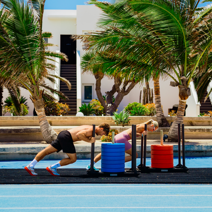 Club La Santa hosts the world’s first outdoor HYROX gym. The format for this competitive fitness event remains consistent around the world, enabling global leaderboards and accumulative World Championships at the end of each race season.