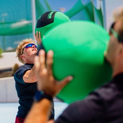 Fitness handball Be a part of this hard but fun cardio and strength workout with a handball. The instruction is for everybody even if you have never played handball before.